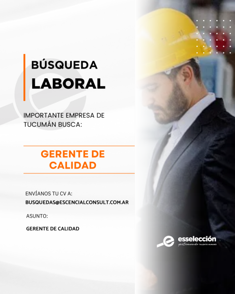 Importante empresa de Tucumán busca incorporar Gerente de Calidad a su equipo